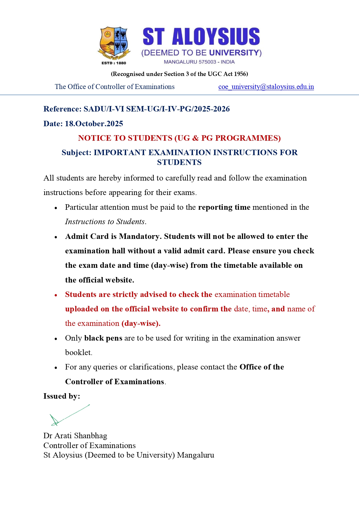 Copyright © 2024 ST ALOYSIUS DEEMED TO BE UNIVERSITY TRUST | Made with by Siona Solutions