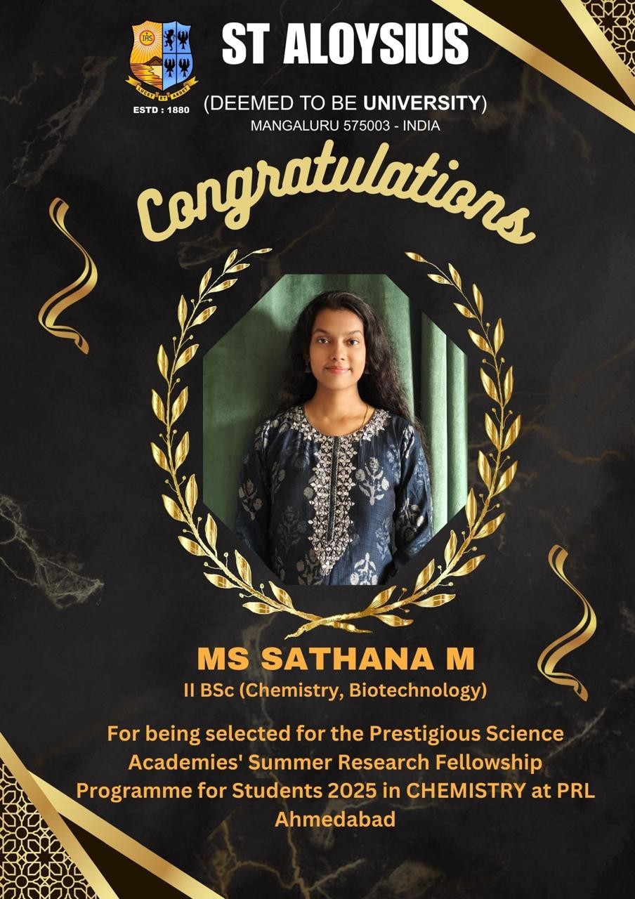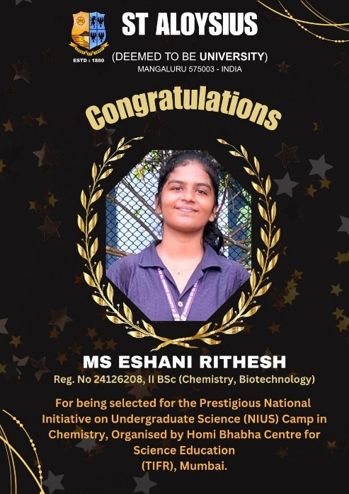 | 5 | Ms Sahana Devadiga | Presented a Poster at an International Conference on Recent Trends In Material Science organized by Kristu Jayanti College, Bangalore | Certificate/Photo |
