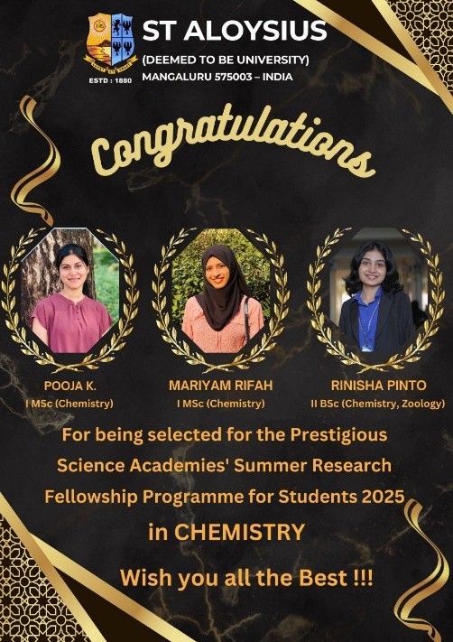 | 6 | Ms Jyothi Simav Vaz | Presented a paper at an International Conference on "New Materials for Industry and Medicine" organized by PSGR Krishnammal College for Women, Coimbatore | Certificate/Photo |